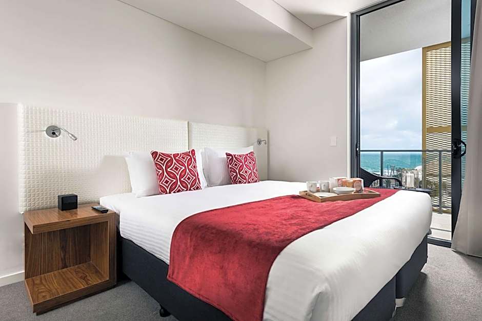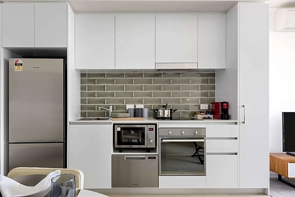 This apartment features a kitchenette with a microwave, dishwasher and full cooking facilities including a full size fridge. Also provided is 2 full size bathrooms, a separate study, laundry facilities and a full size balcony with two outdoor settings.It features either city or ocean views. A 43-inch TV in the lounge area and a 32-inch TV in the master bedroom. Complimentary WiFi and in-room movies are also included.